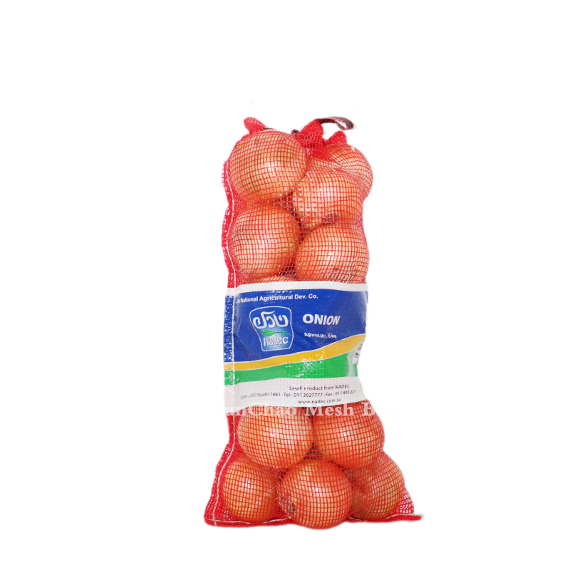 Made from durable polypropylene, the 4006 Onion Mesh Bag balances strength and flexibility, withstanding frequent handling and transportation. The woven mesh design features a warp density of 15 and weft density of 26, creating a secure structure that prevents onion loss while allowing air circulation to maintain freshness. The reinforced top drawstring (optional) provides easy closing and carrying, while the tear-resistant paper label is printed with high-quality ink that resists fading and smudging. The bold red color is achieved through non-toxic, food-safe dyes that do not bleed or transfer to onions, ensuring product safety and visual appeal.
