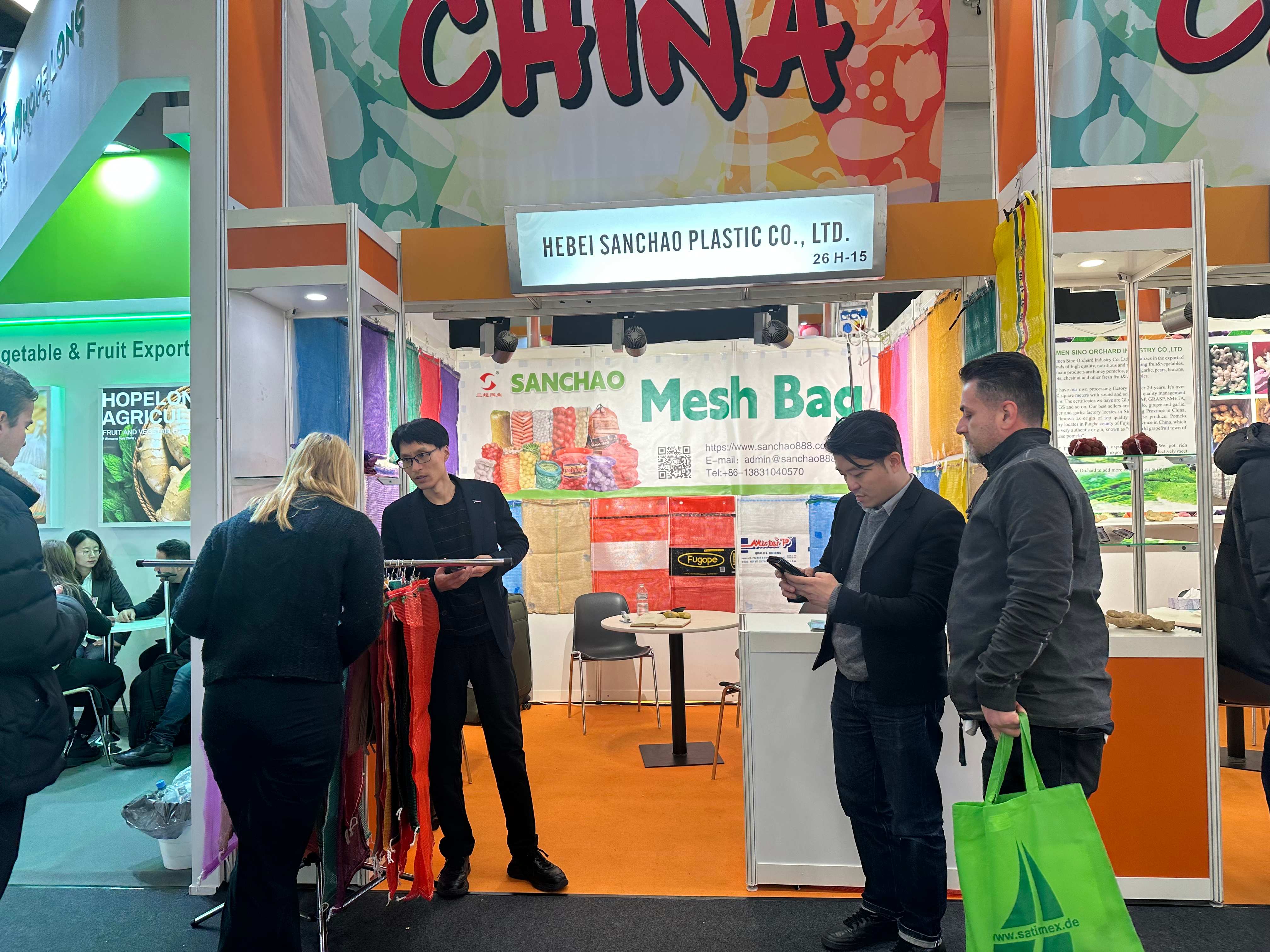 In 2024, Hebei Sanchao will actively embrace the international market and participate in international competition. During the Spring Festival,Sanchao will participate in the European Agricultural Products Exhibition and Sales Fair. During the exhibition, Sanchao's booth was visited by international friends from all over the world. Through communication, they learned about Sanchao's steady improvement in product quality, significant increase in production capacity, huge improvement in factory equipment, and significant progress in institutionalization and standardization in recent years. Sanchao is constantly improving its competitiveness with an international perspective, enriching product categories, enhancing product quality, improving internal management, introducing the most advanced production equipment, and providing customers with better services.